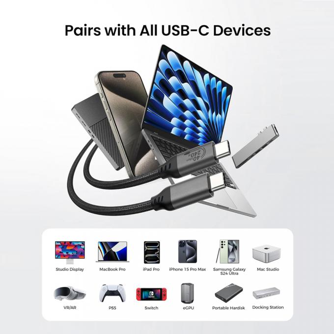 2.Multi-Functional Compatibility: Compatible with Thunderbolt 3/4, USB 3.2, USB-C, and various devices, including laptops, smartphones, monitors, and storage drives.